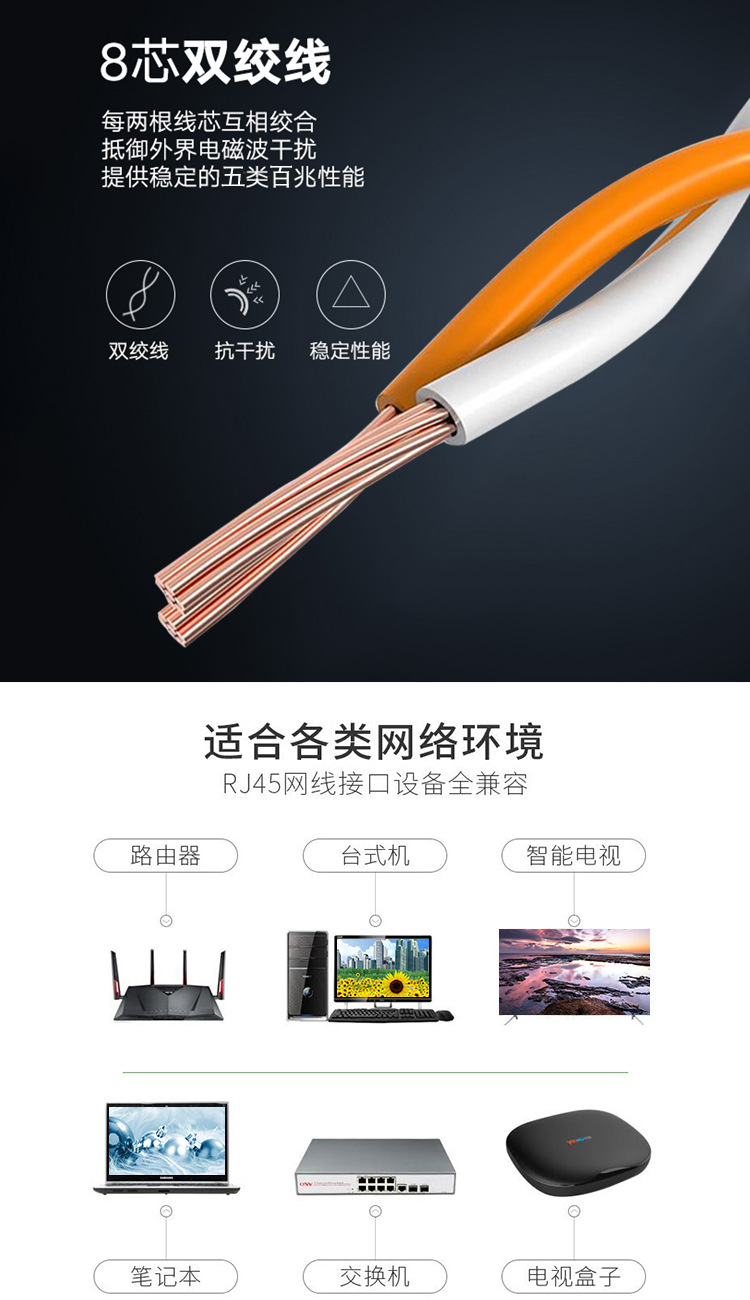 2米六类非屏蔽智能导航RJ45至RJ45数据跳线